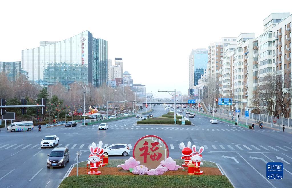 在海淀區中關村大街布置的節日景觀(1月16日攝)。