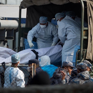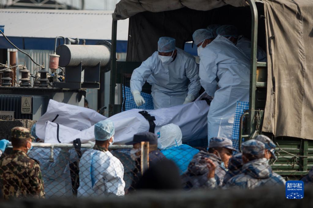 1月17日,在尼泊爾博克拉,工作人員將墜機遇難者遺體裝上卡車,準備運往加德滿都。