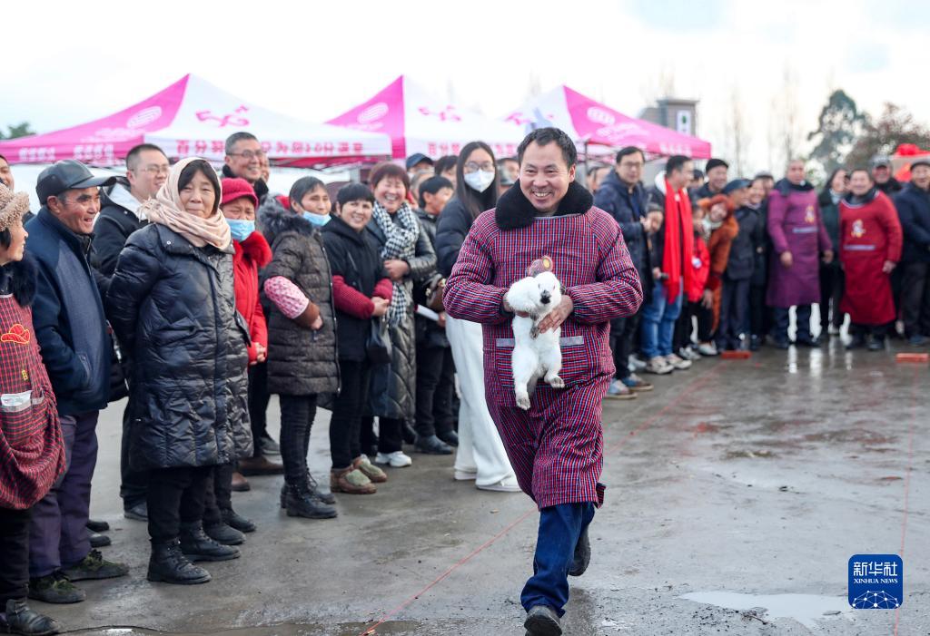 當日,四川省華鎣市永興鎮在馬架坪村產業基地“玉兔園”組織開展“玉兔賽跑”趣味活動,人們在歡快祥和的氛圍中迎接兔年的到來。
