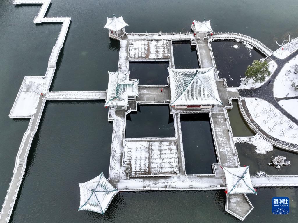 1月15日拍攝的湖北省武漢市東湖風景區雪景(無人機照片)。