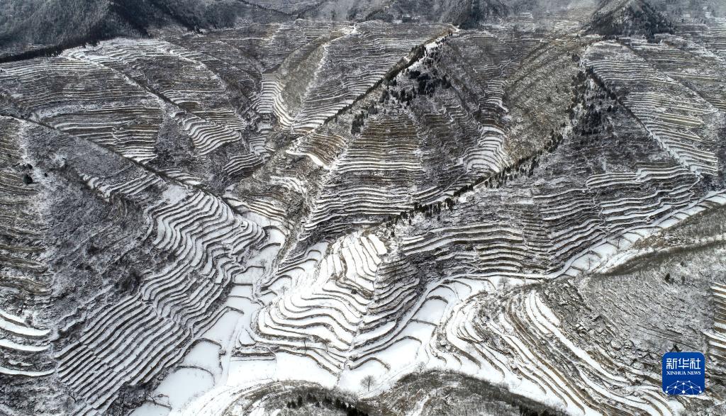 1月15日在河北省邯鄲市涉縣王金莊拍攝的雪后梯田景色(無人機照片)。