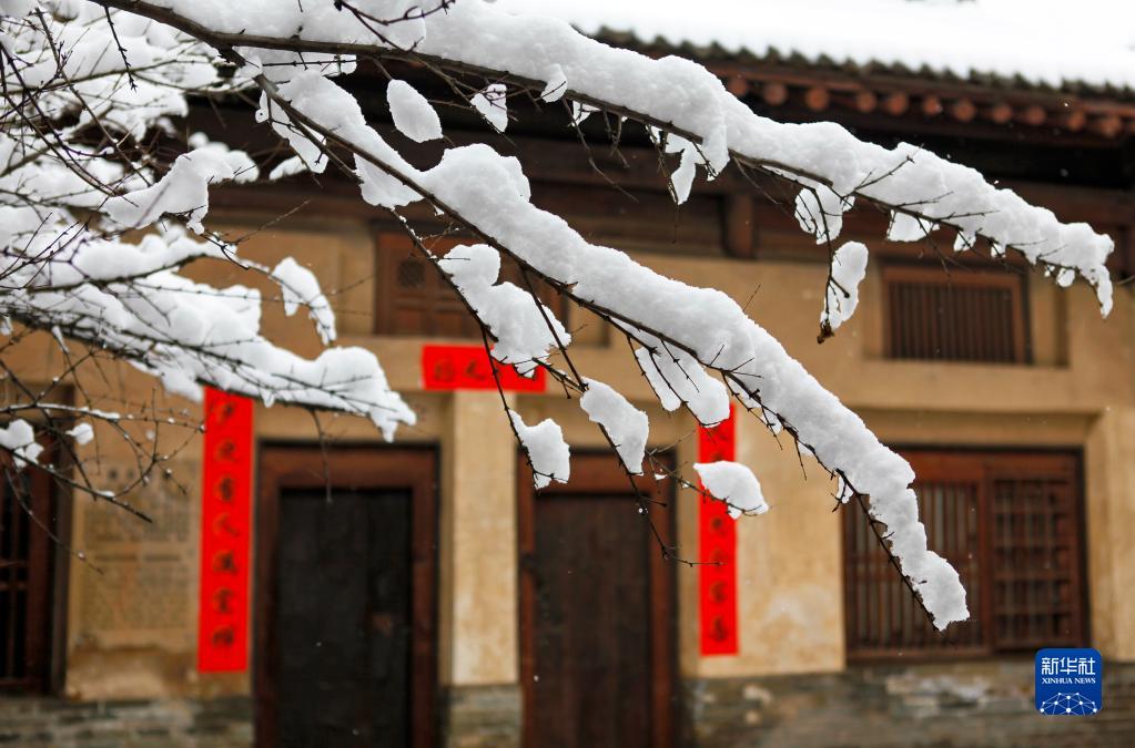 1月14日在山西省臨汾市襄汾縣丁村民俗博物館內拍攝的雪景。