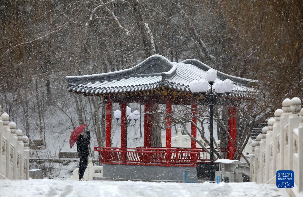 1月14日,市民在河北省石家莊市長安公園欣賞雪景。