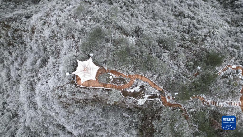 1月16日拍攝的貴州省遵義市余慶縣關興鎮大銀山雪后景色(無人機照片)。