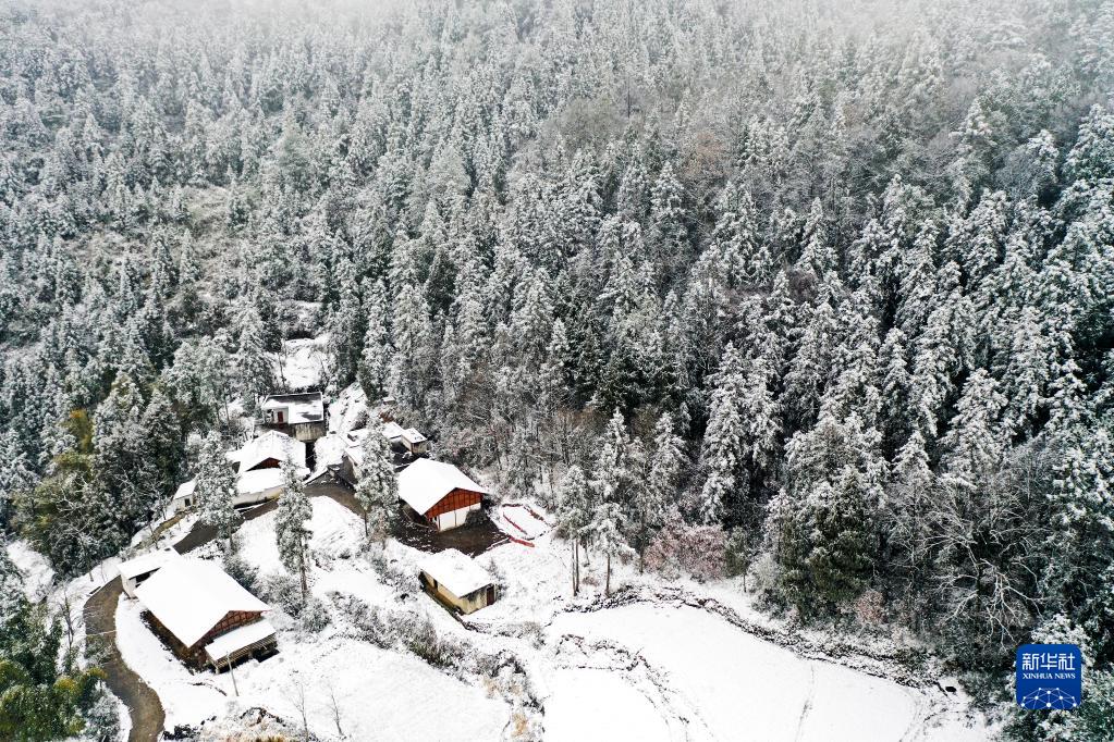 1月15日在貴州省遵義市正安縣鳳儀街道大堡社區拍攝的雪景(無人機照片)。