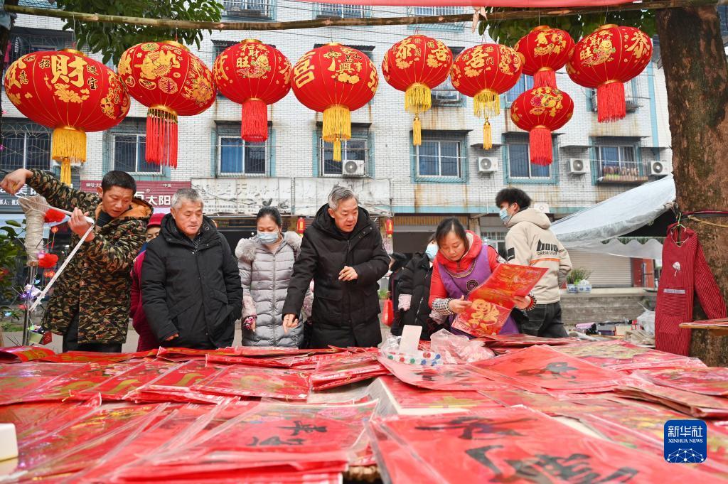 1月17日,群眾在四川省內江市東興區白合鎮蘇家場鎮趕集選購文化年貨。