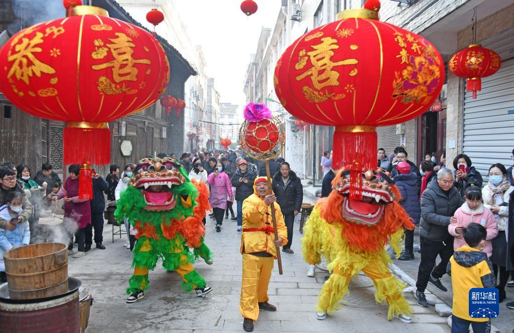 1月18日,在浙江省臺州市仙居縣下各鎮路北村,村民們舞獅迎新春。