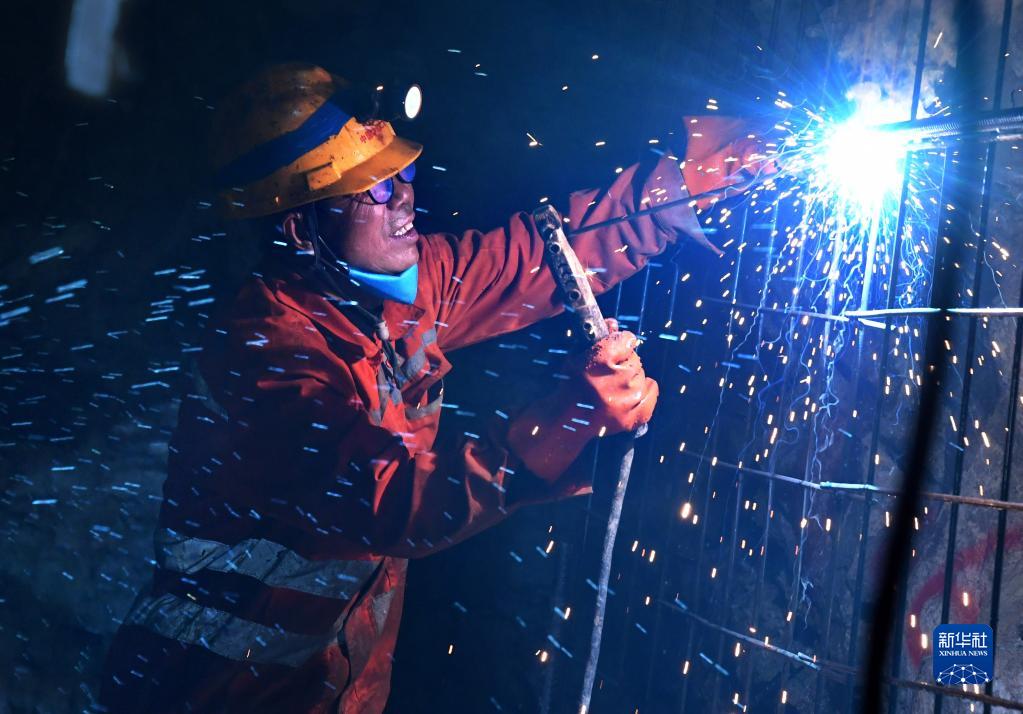 1月17日,中鐵二局建設者在海底隧道施工現場進行焊接作業。