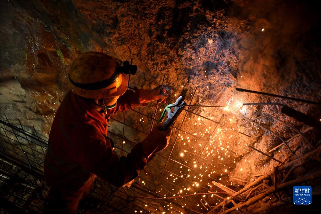 1月17日,中鐵二局建設者在海底隧道施工現場進行焊接作業。