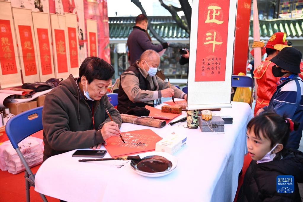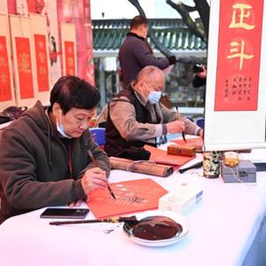 1月18日,書法家在水上花市啟動儀式上為市民寫春聯。
