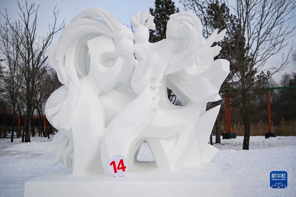 1月18日拍攝的第二十九屆全國雪雕比賽一等獎作品《我的新娘》。