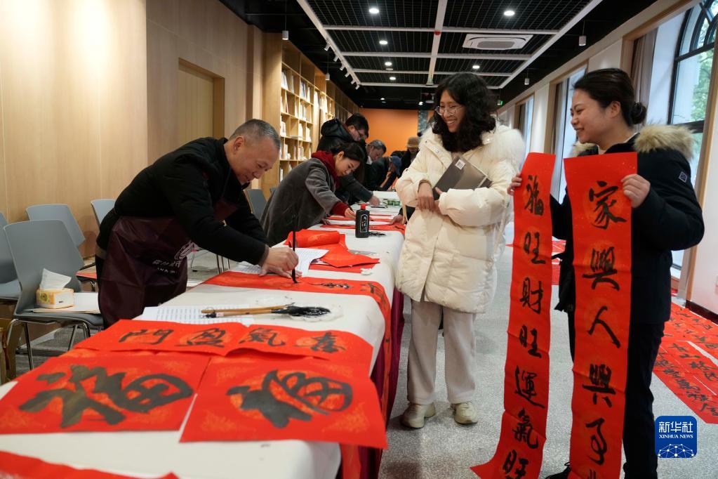 春節臨近,各地舉行寫春聯送祝?;顒?,書法志愿者為群眾書寫并贈送新春對聯和福字,送上新春祝福。