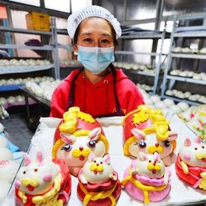 1月17日,山東省青島市城陽區紅島街道觀濤社區的居民在制作傳統花饃,花樣別致的花饃寓意美好生活“蒸蒸日上”。