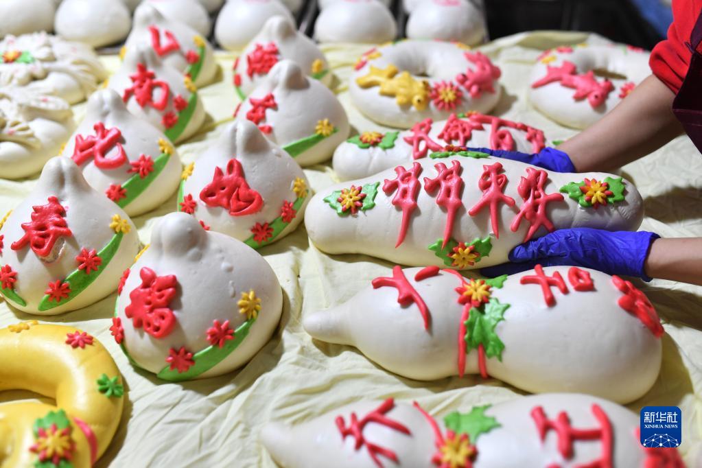 這是在山東省青島市城陽區紅島街道觀濤社區拍攝的居民制作的傳統花饃,花樣別致的花饃寓意美好生活“蒸蒸日上”(1月17日攝)。