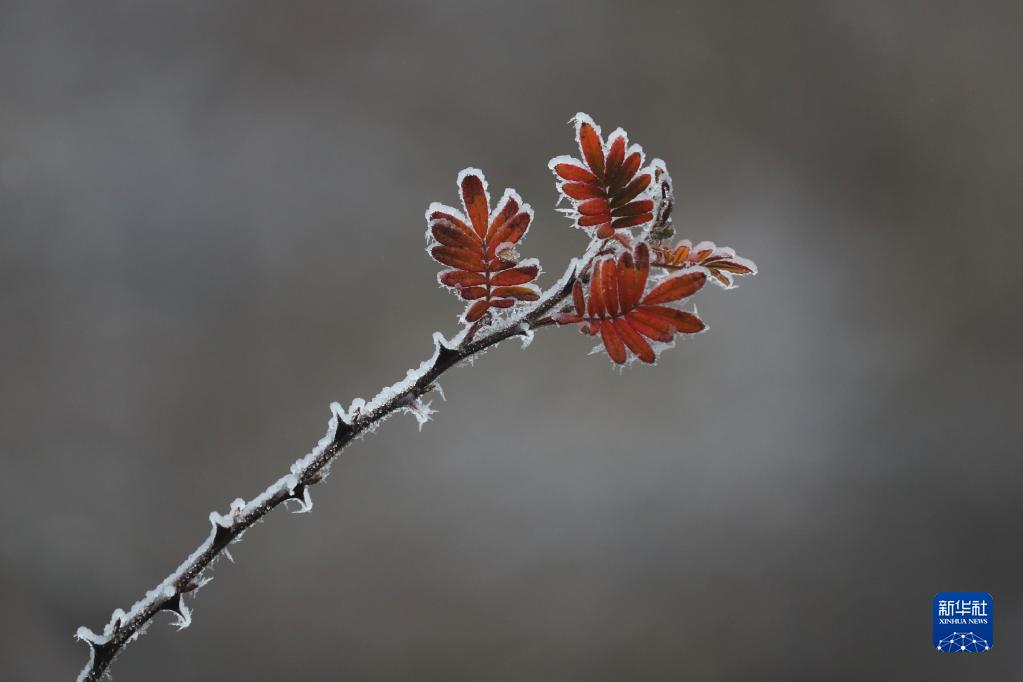 云南省昭通市巧家縣馬樹鎮,山上的植被被冰霜覆蓋(1月15日攝)。