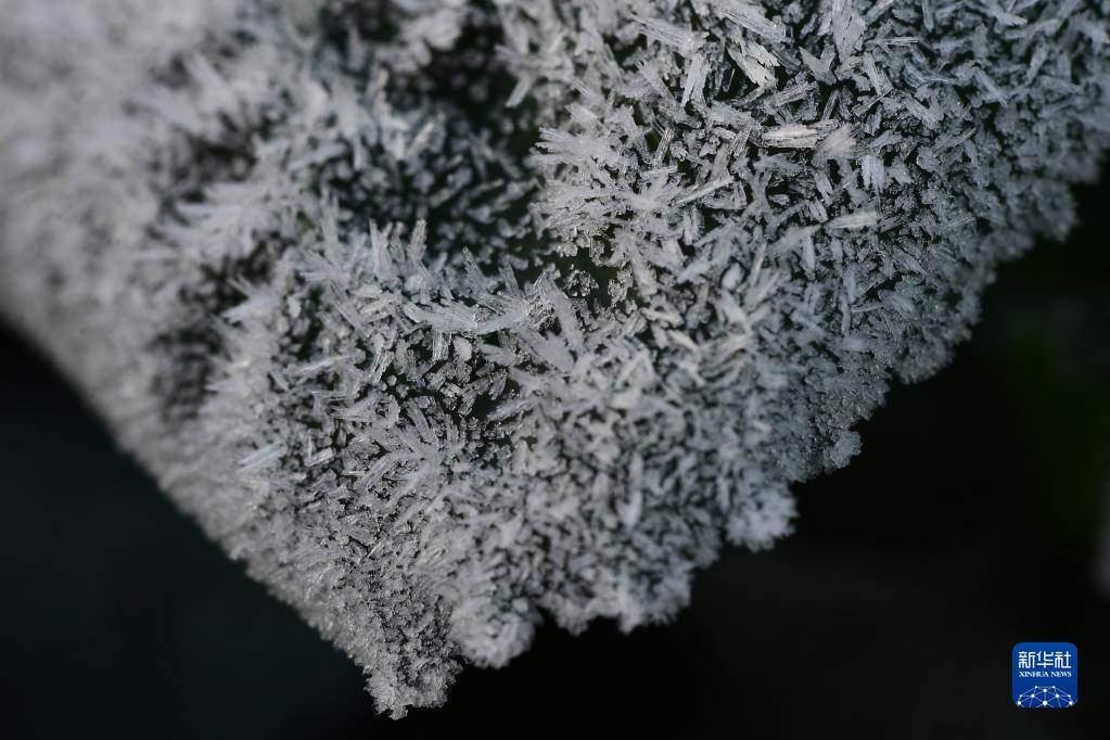 云南省曲靖市羅平縣金雞村,一片樹葉上鋪滿霜花(1月7日攝)。