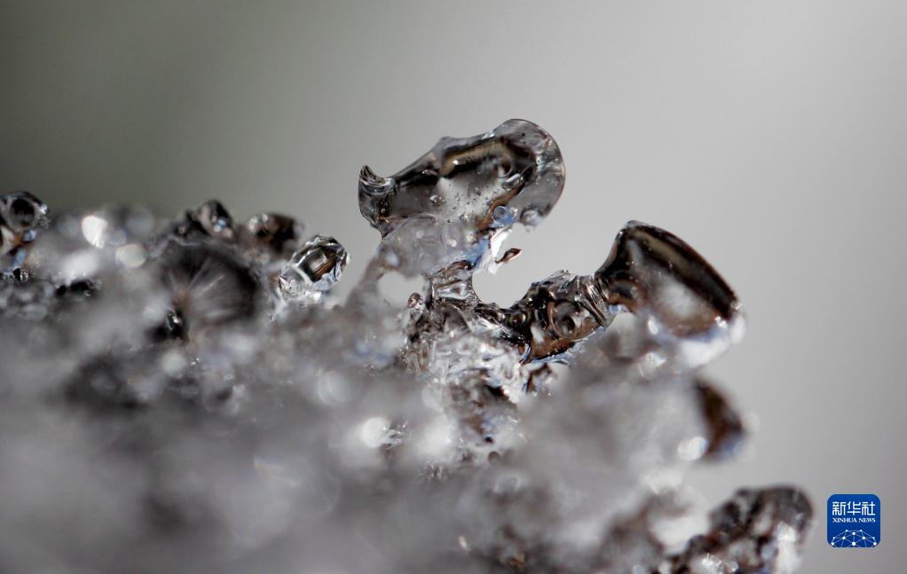 山東省鄒平市青陽鎮南部山區,雪花融化形成不同形狀的冰(1月15日攝)。