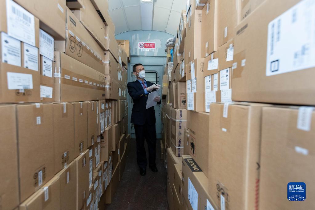 1月18日,1462次列車行李員馮少華清點貨物。這是他和行李共同度過的第12個春運。