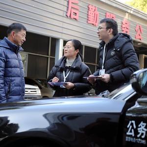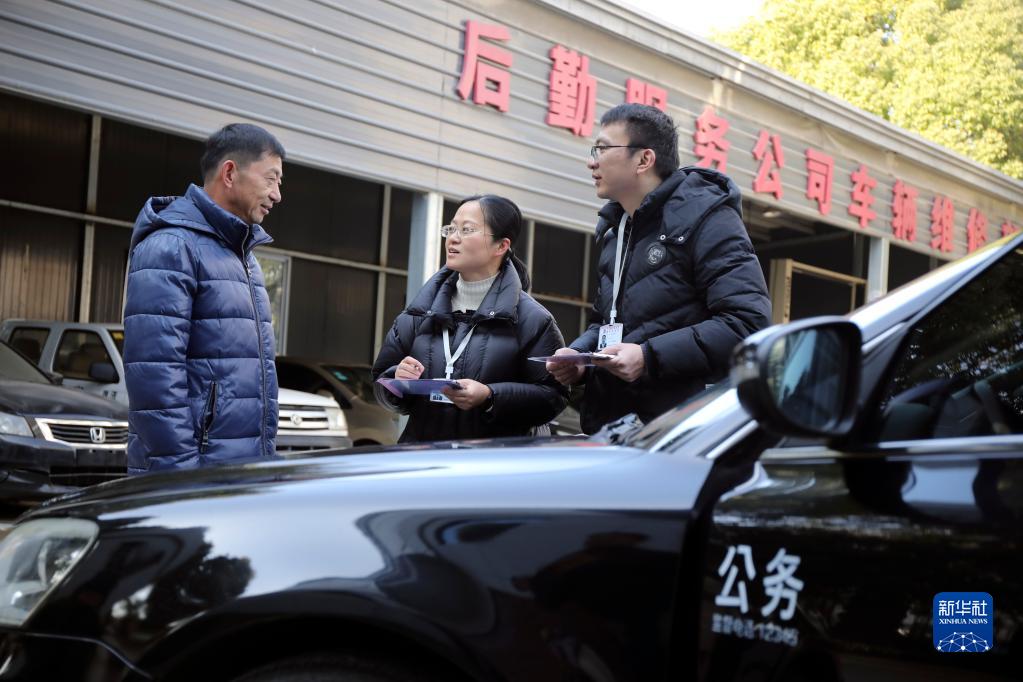 1月18日,紀檢監察干部對照派車任務清單檢查未派車輛定點停放情況。