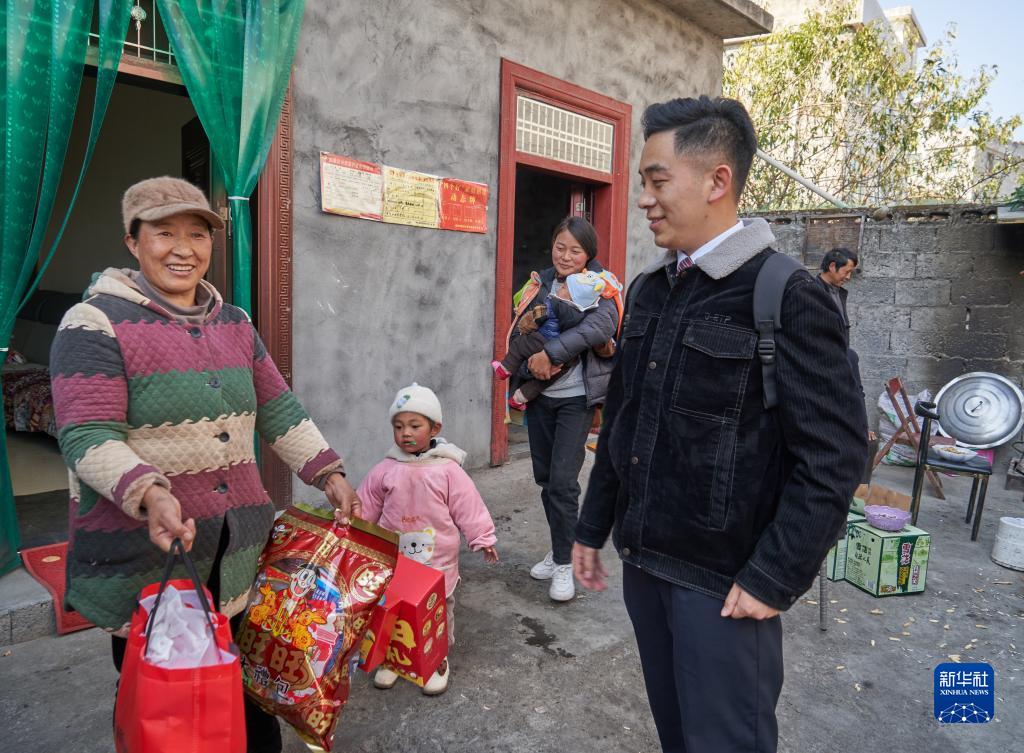 1月17日,沙馬伍且回到位于四川省涼山彝族自治州越西縣中所鎮的家中,把年貨送給母親。