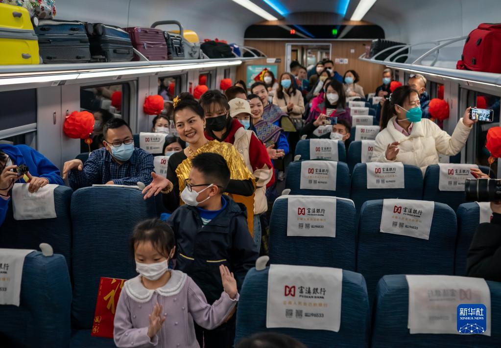 當日,奔馳在中老鐵路上的C272次列車車廂內,一場以“中老一家親,祥和中國年”為主題的列車春晚精彩上演。