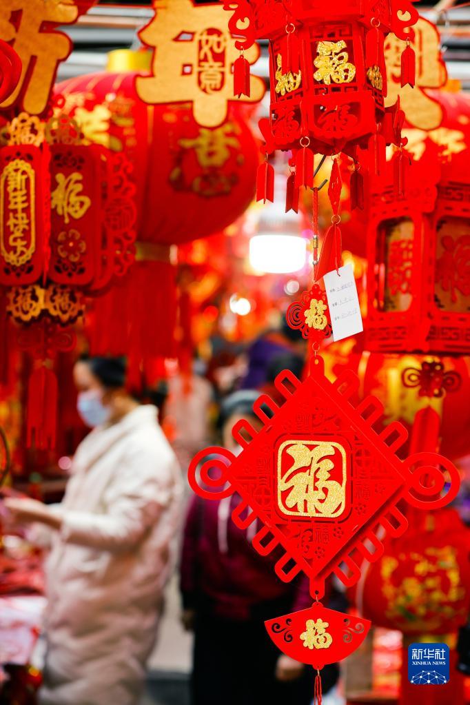 1月19日,人們在四川成都荷花池批發市場選購節慶用品。