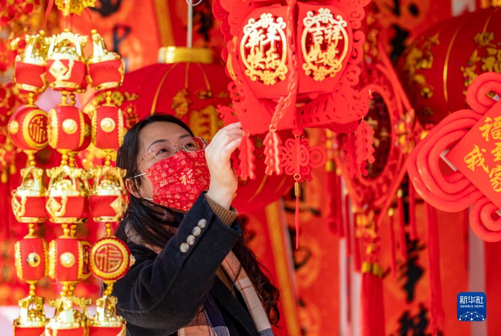 1月19日,在湖南省隆回縣桃花坪街道朝陽市場,市民在選購新年飾品。