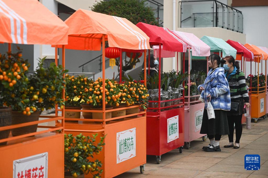 1月18日,顧客在海南熱帶花卉交易(拍賣)市場選購花卉。