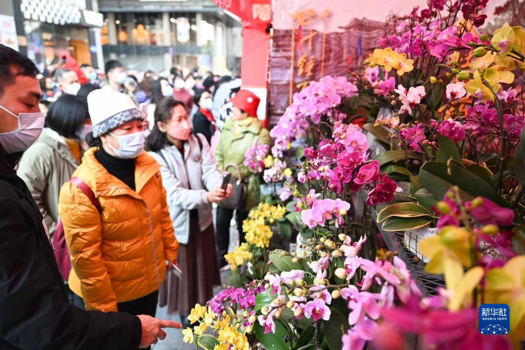 當日,廣州越秀西湖花市正式啟動,不少市民前來逛花市、選購鮮花,迎接新春佳節的到來。