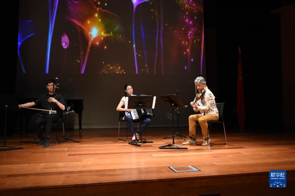 1月19日,在新西蘭南島克賴斯特徹奇藝術與音樂中心,音樂家們在“歡樂春節”——克賴斯特徹奇新春音樂會上演奏樂曲。