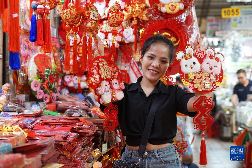 農歷新春臨近,位于越南南部的胡志明市年味漸濃。盡管癸卯年是越南貓年,這里也有著“兔元素”的年貨和擺件。