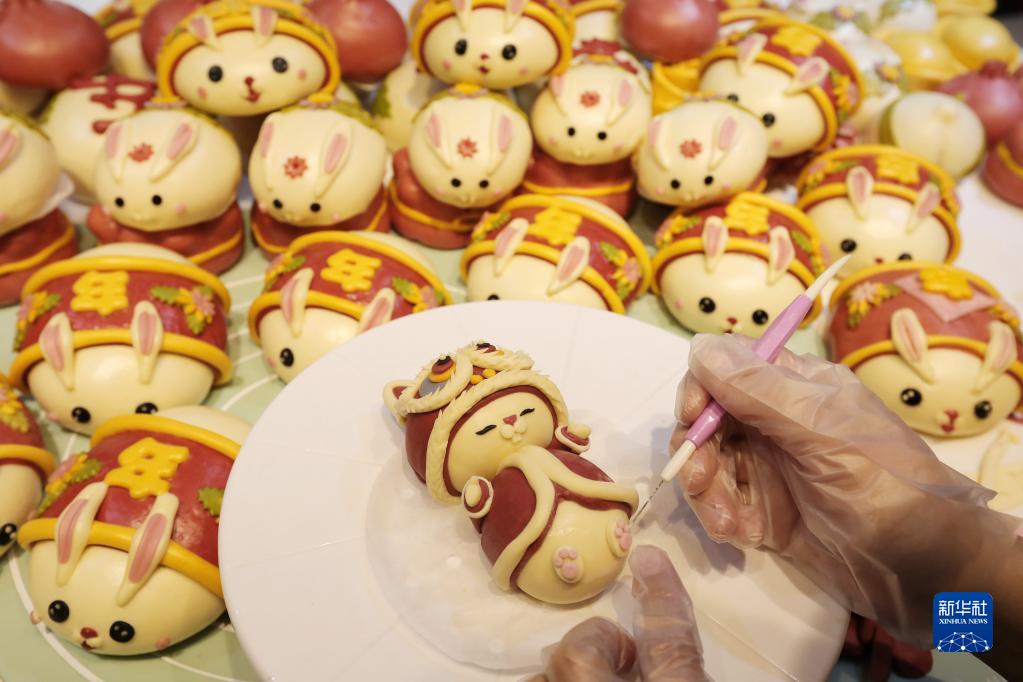 春節臨近,安徽省淮北市一些面點師以兔為主題,創作出各式各樣的“萌兔”花饃,供應節日市場,迎接新春佳節的到來。