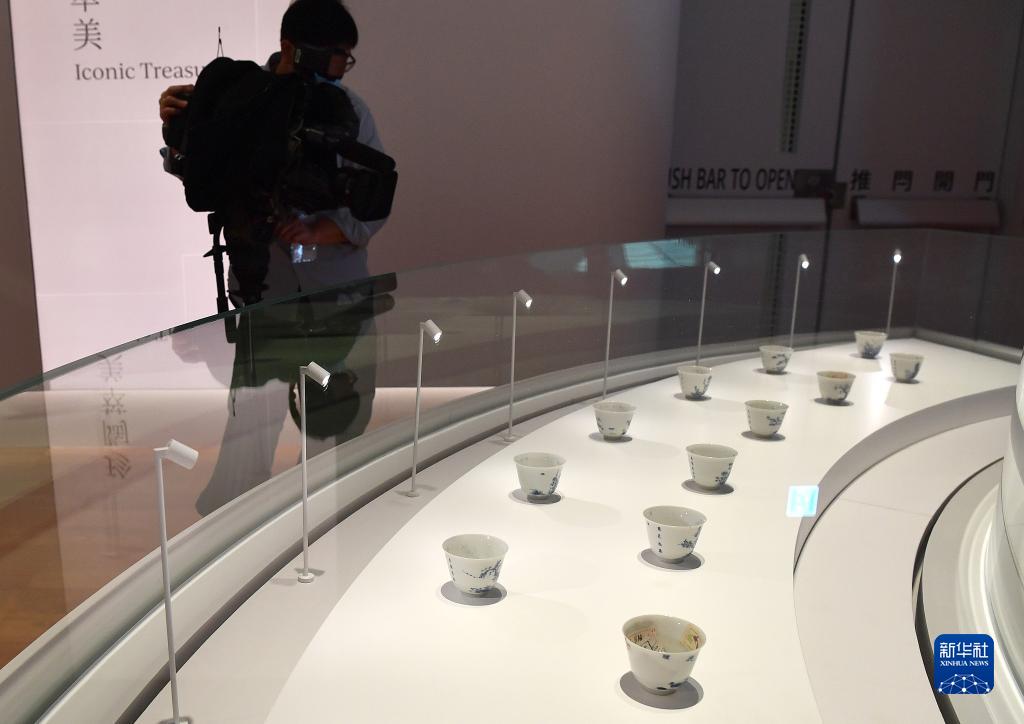1月19日,記者在拍攝“青花十二月花卉紋詩句杯”。