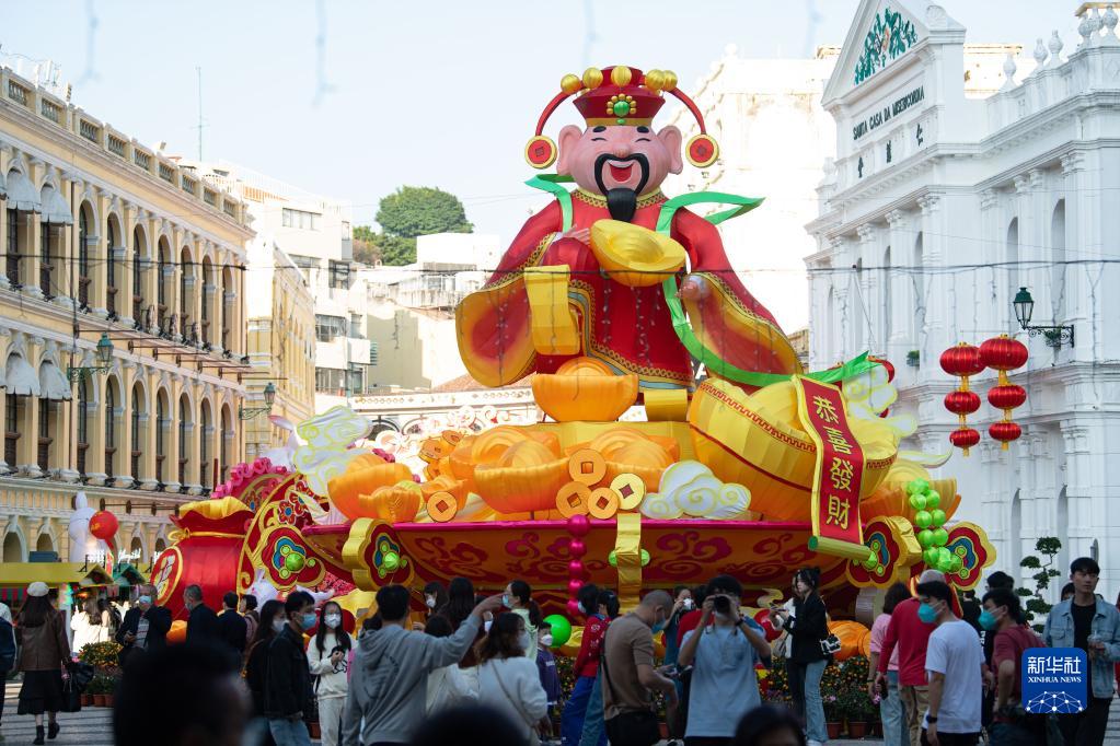 1月14日,游客在澳門市中心議事亭前地游覽。