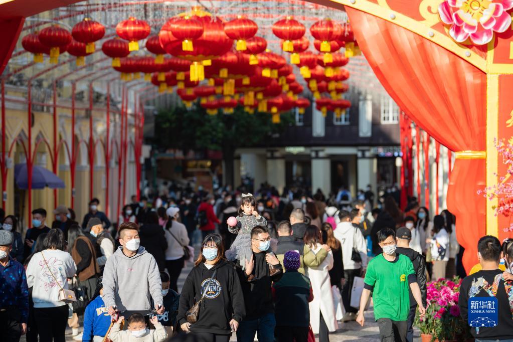 1月18日,游客在澳門市中心議事亭前地游覽。