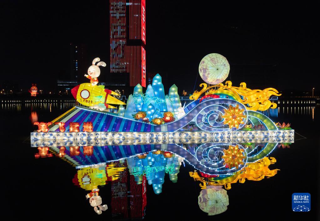 1月18日晚,2023癸卯兔年莘莊燈會在上海市閔行區莘莊鎮莘莊商務區正式啟幕。今年的莘莊燈會將從1月18日持續到2月6日,展出的大型燈組多數以兔子為設計原型,同時融入莘莊梅花、吉祥物“莘寶”等元素,眾多市民前來賞燈游玩,感受新年氛圍。