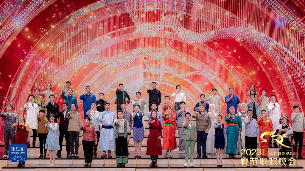 1月19日,中央廣播電視總臺《2023年春節聯歡晚會》按正式直播標準流程順利完成了第五次彩排。這是彩排現場。