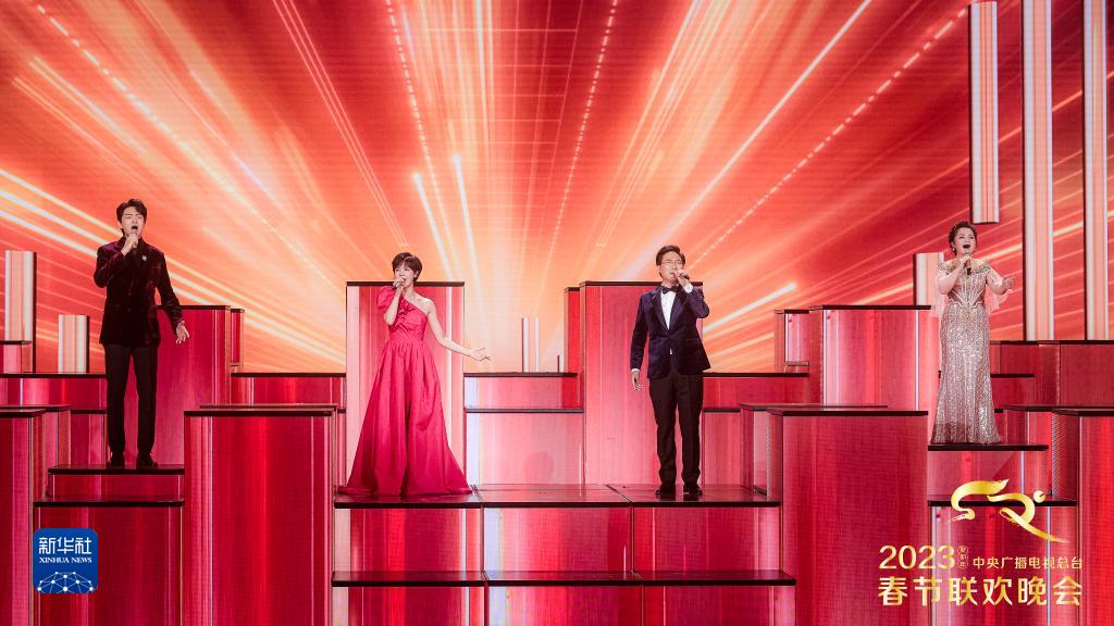 1月19日,中央廣播電視總臺《2023年春節聯歡晚會》按正式直播標準流程順利完成了第五次彩排。這是彩排現場。