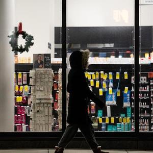 1月18日,在美國弗吉尼亞州阿靈頓,一名女子從一家零售商店旁經過。