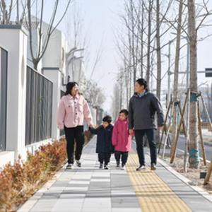 1月19日,李輝和家人在雄安新區啟動區街道上行走。