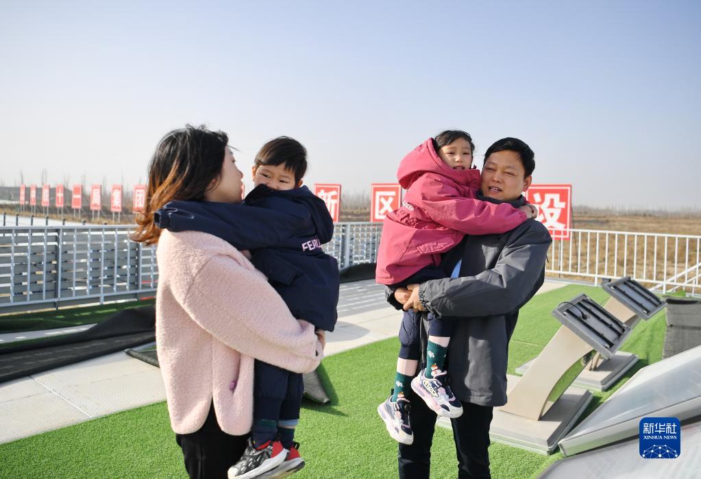 1月19日,李輝帶著家人在項目工地參觀臺上參觀。