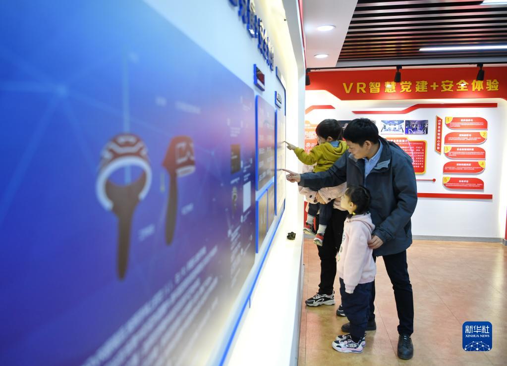 1月18日,李輝陪著家人在項目部活動室參觀。
