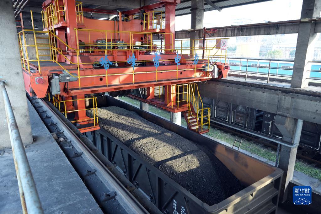 1月19日,在大唐安徽發電有限公司淮南洛河發電分公司,螺旋卸煤機在進行卸煤作業。