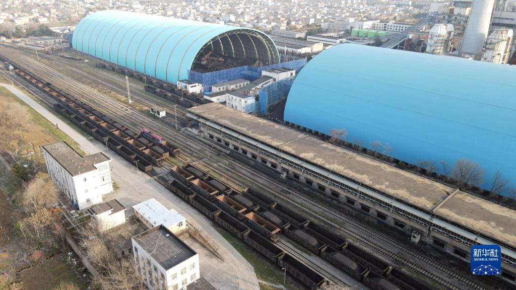 1月19日,在大唐安徽發電有限公司淮南洛河發電分公司,一列列電煤專列等待卸煤作業(無人機照片)。