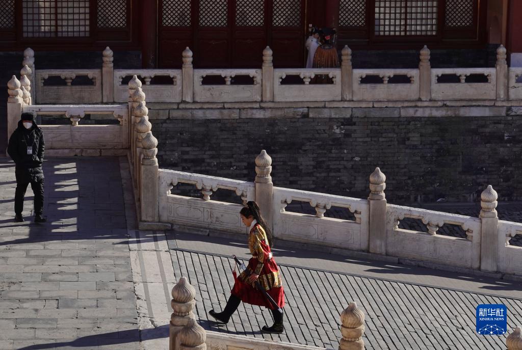 春節前夕,不少游人來到北京故宮博物院,在藍天暖陽下感受冬日故宮的獨特韻味。