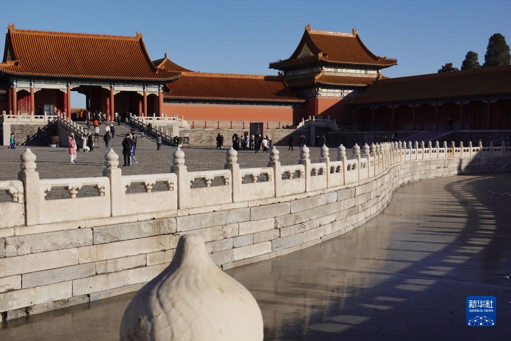 春節前夕,不少游人來到北京故宮博物院,在藍天暖陽下感受冬日故宮的獨特韻味。
