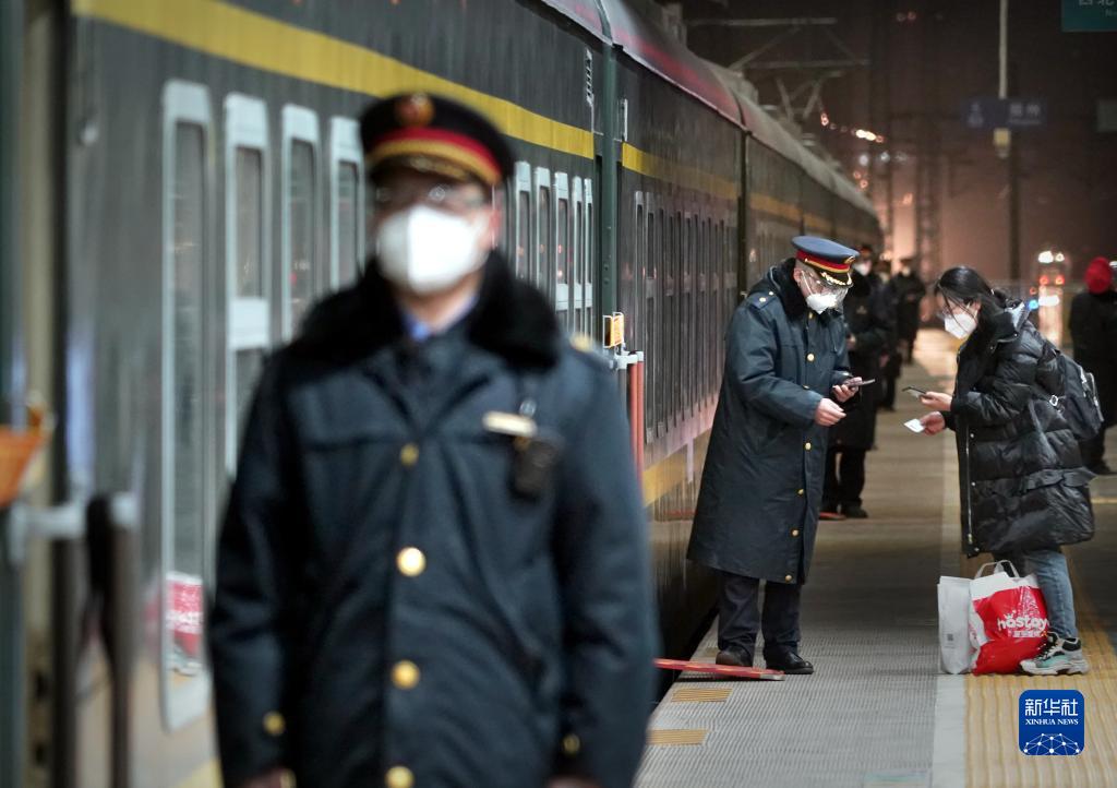 1月20日,旅客在鄭州站乘坐首趟“紅旗渠”號列車。