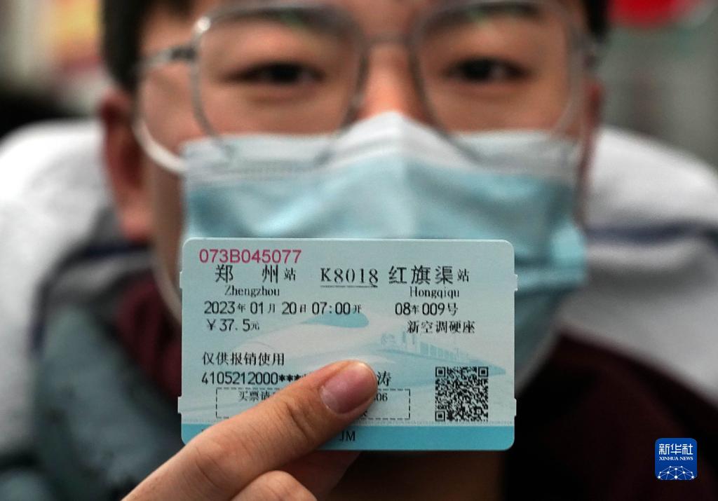 1月20日,旅客在首趟“紅旗渠”號列車上展示車票。