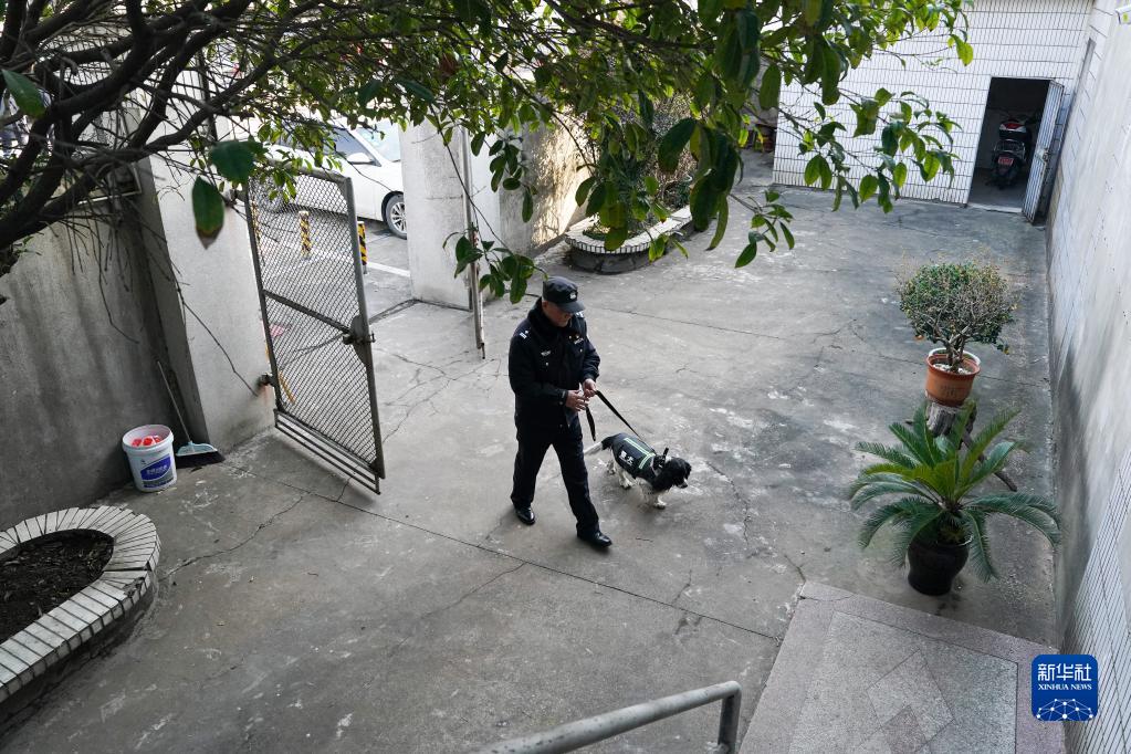 1月18日,民警王支斌和警犬“和平”在巡邏后回到裕溪口警務室。