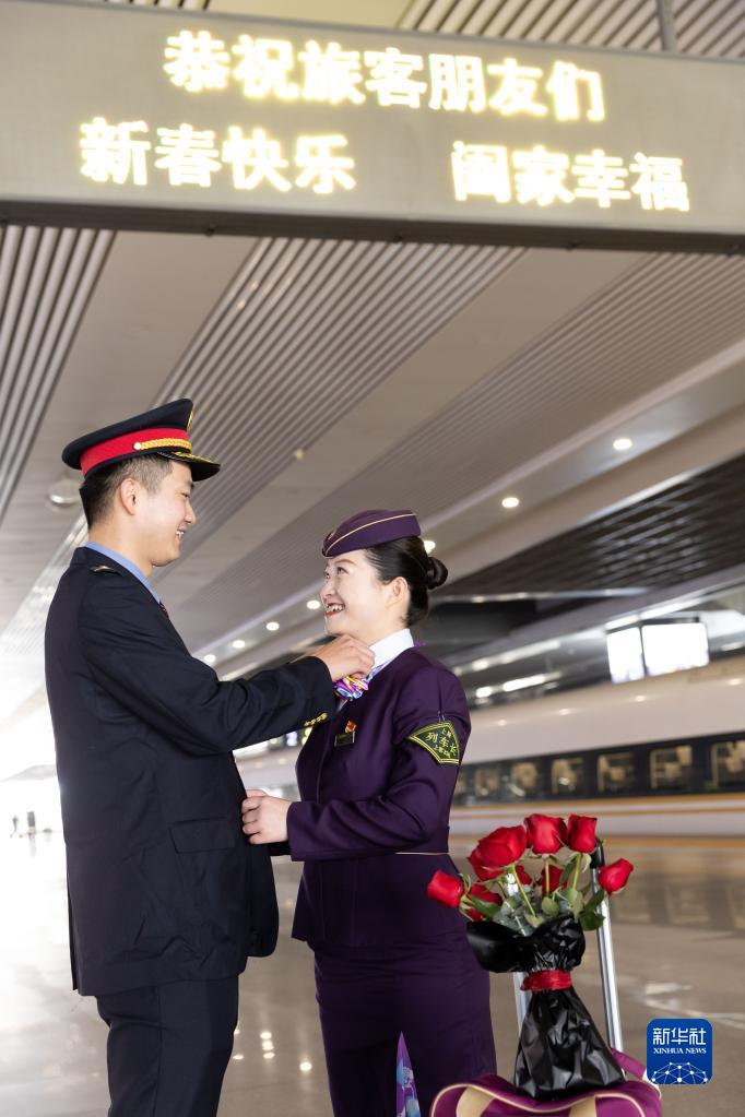 1月20日,王恒值乘結束,丈夫路延則開始了自己的值乘任務。當日還是王恒的生日,路延為結束值乘的妻子準備了玫瑰花,夫妻二人在站臺短暫相聚后依依惜別。